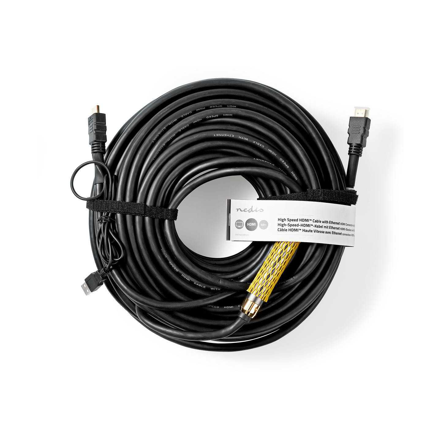 Cablu HDMI de mare viteza cu Ethernet si amplificator Nedis 40m negru.
